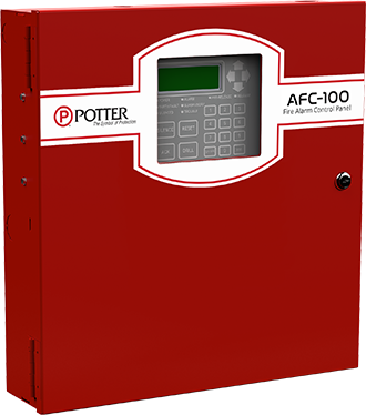 El AFC-100 es un sistema de alarma contra incendios analógico/direccionable con una capacidad total de 100 direcciones. Se logra capacidad adicional mediante módulos SLC multipunto. El panel de control utiliza el exclusivo protocolo Potter, que incluye una línea completa de sensores y módulos. Cada SLC puede estar compuesto por cualquier combinación de sensor de humo, detectores de calor o módulos, y permite una impedancia total de 50 ohmios, además de usar cualquier cable que cumpla con el Código Eléctrico Nacional (NEC).