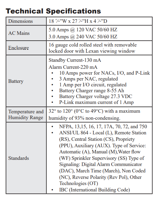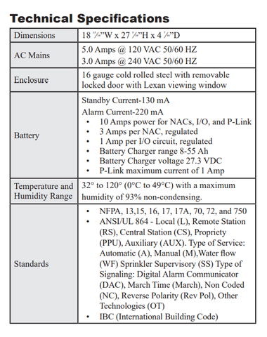 El AFC-1000 cuenta con una fuente de alimentación de 10 A con seis circuitos de dispositivos de notificación (NAC) y cuatro circuitos de entrada/salida (E/S). Los NAC tienen una potencia nominal de 3 A cada uno y las E/S de 1 A cada una. Cada salida está regulada y tiene limitación de potencia. Además, cada salida es programable de forma única y puede configurarse para señal fija, sincronización de estroboscopios, potencia constante, alimentación del retenedor de puerta o liberación. La sincronización de estroboscopios incluye Gentex, AMSECO, System Sensor y Cooper/Wheelock, y con el exclusivo Quadrasync, cada salida puede tener una marca única y todos los estroboscopios parpadearán juntos. Las E/S están diseñadas para entradas como estaciones de liberación manual e interruptores de suspensión que no requieren sondeo y reaccionan casi instantáneamente.
